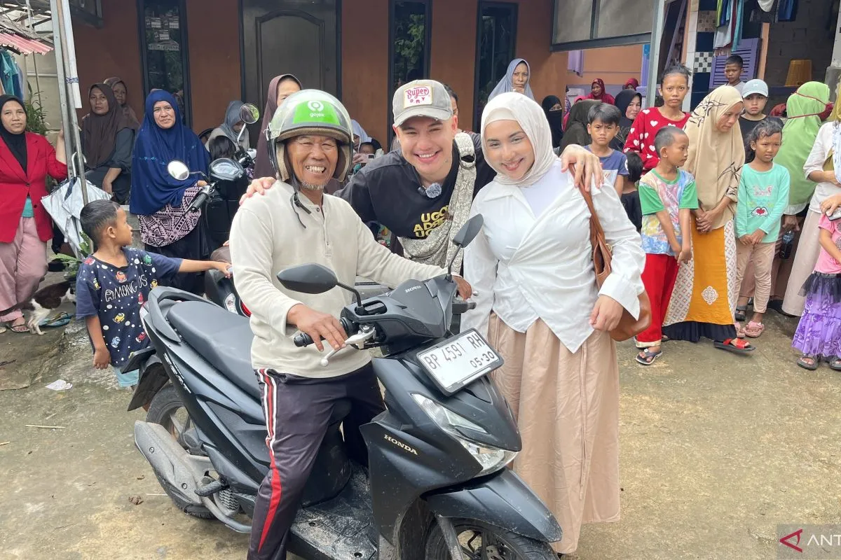 Batam (ANTARA) - Pemengaruh asal Singapura, Kai Emilio memberikan motor baru kepada seorang pengemudi ojek online bernama Sudiono Abadi di Batam, Kepulauan Riau.