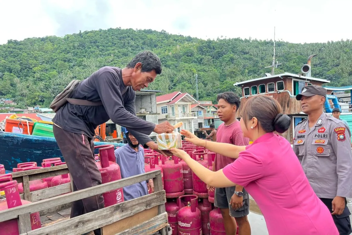Kapolres Kepulauan Anambas AKBP I Gusti Ngurah Agung Budianaloka bersama Ketua Bhayangkari Novi Ngurah memimpin langsung pembagian paket makanan itu di Pelabuhan Tarempa, pangkalan ojek, dan Pelabuhan Sri Siantan.