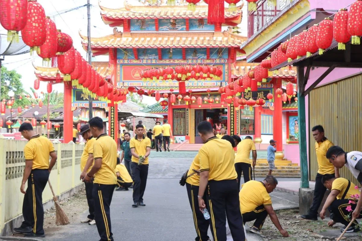 Dalam pelaksanaannya, personel Polres Lingga secara bersama-sama membersihkan area dalam dan luar klenteng, mulai dari halaman depan, perkarangan, ruang ibadah, hingga fasilitas pendukung lainnya.