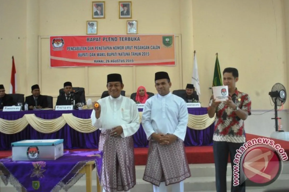 Natuna (Antara Kepri) - Lima pasangan calon bupati dan calon wakil bupati mengambil nomor urut untuk mengikuti Pemilihan Kepala Daerah Natuna pada 9 Desember 2015.