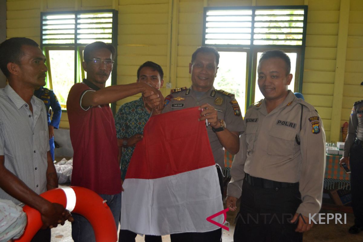 Dalam kesempatan tersebut Kapolres Lingga AKBP Ucok Lasdin Silalahi, SIk, MH didampingi Kepala Satuan Polairud Polres Lingga memberikan bantuan sembako sebanyak 40 paket, 40 buah teks Pancasila dan 20 buah Bendera Merah Putih serta 10 buah Life boy kepada masyarakat Desa Sungai Pinang. (Antara).