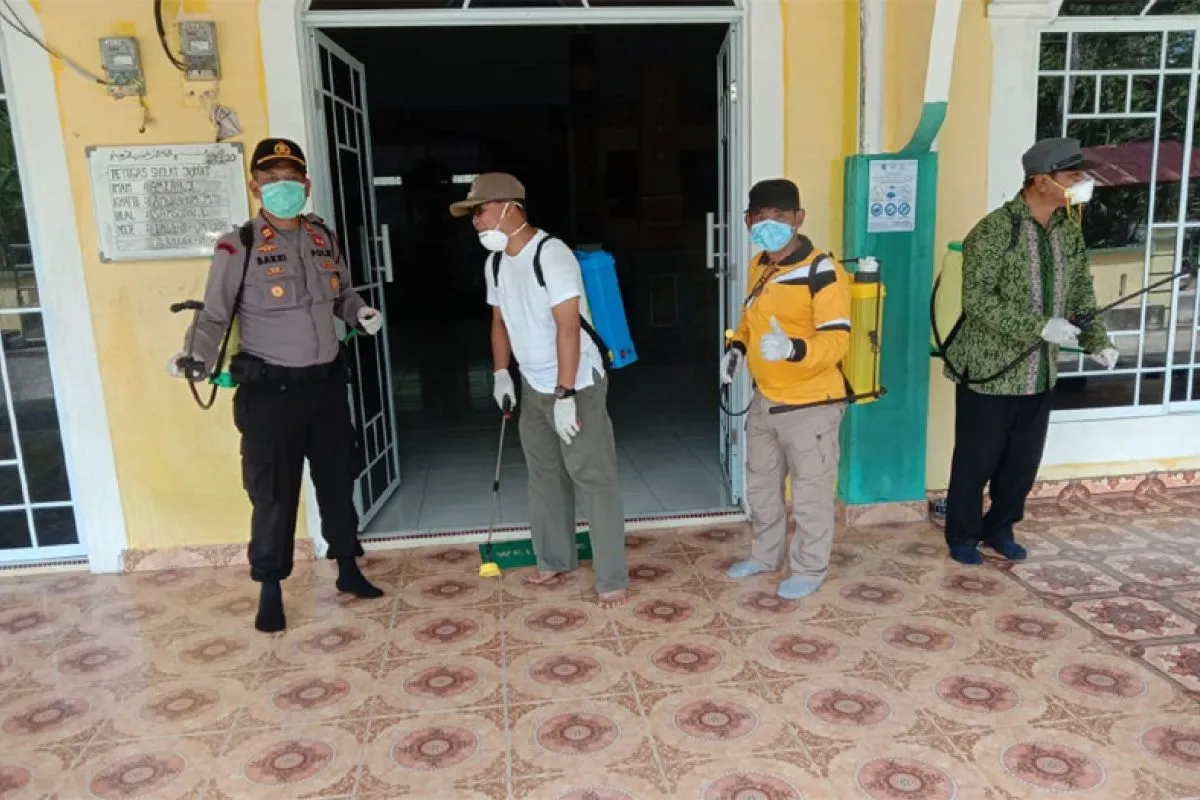 Tanjung Balai Karimun (ANTARA) - Anggota DPRD Karimun dari Fraksi Partai Golkar Wiyono bersama sejumlah relawan bentukannya menyemprotkan cairan disinfektan di Pulau Buru, Kecamatan Buru, Kabupaten Karimun, Kepulauan Riau, Kamis (26/3).