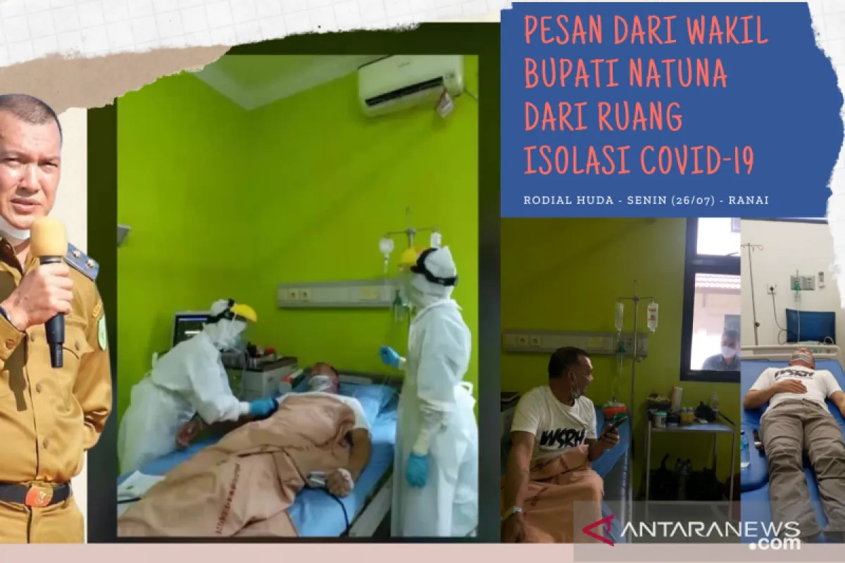 Natuna (ANTARA) - Melalui ruang isolasi COVID-19 di Rumah Sakit Umum Daerah Kabupaten Natuna, Wakil Bupati Kabupaten Natuna Rodhial Huda menyampaikan pesan haru kepada masyarakatnya melalui media sosial dan rekaman suara yang dikirimkan ke redaksi ANTARA, Senin (26/7). Berikut rekaman suara Rodhial Huda.
