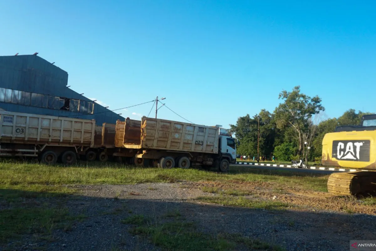 Saat ini barang bukti berupa 2 ekskavator dan 8 dump truck diamankan di Pos Satuan Polisi