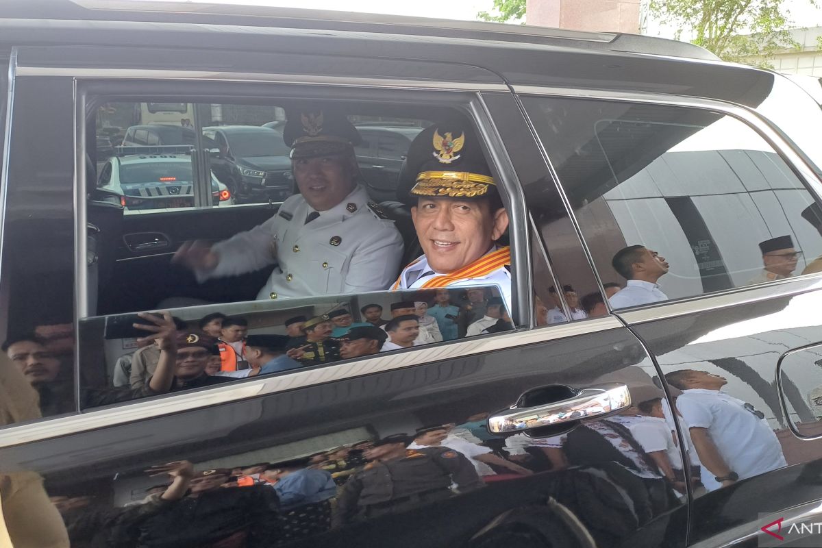 Gubernur Kepri Ansar Ahmad naik mobil dinas bersama Wagub Nyangang Haris Pratamura. (ANTARA/Ogen)