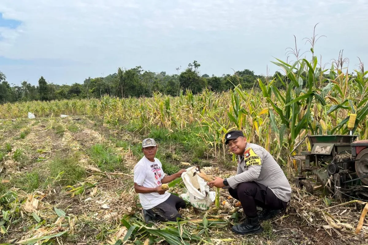 Panen jagung tersebut hasil penanaman oleh Polsek Singkep Barat bersama masyarakat tani di lahan seluas 1 hektare dalam rangka mendukung ketahanan pangan.