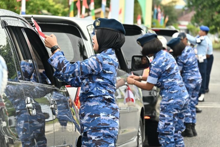 Komandan Lanud RSA, Kolonel Pnb I Ketut Adiyasa Ambara, dikonfirmasi dari Natuna, Selasa, mengatakan pembagian bendera dilaksanakan pada Selasa pagi hingga siang di gerbang Lanud RSA.
