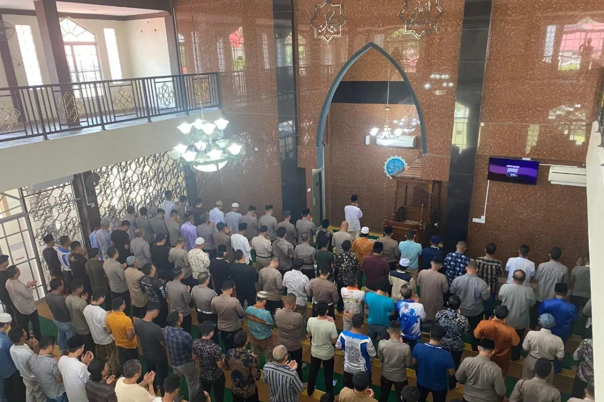Shalat gaib digelar di Masjid Jihadul Muharram Mapolresta Barelang diikuti personel Polresta Barelang.