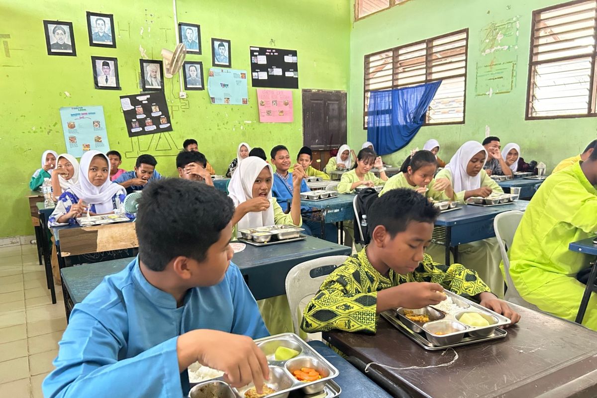 Pihak sekolah memberdayakan siswa yang piket untuk mengambil dan menghantarkan ompreng (food tray) MBG dari kantor ke kelas masing-masing. Untuk pengambilan dilakukan oleh siswa laki-laki, ketika ompreng sudah selesai atau kosong dibawa oleh siswa perempuan.