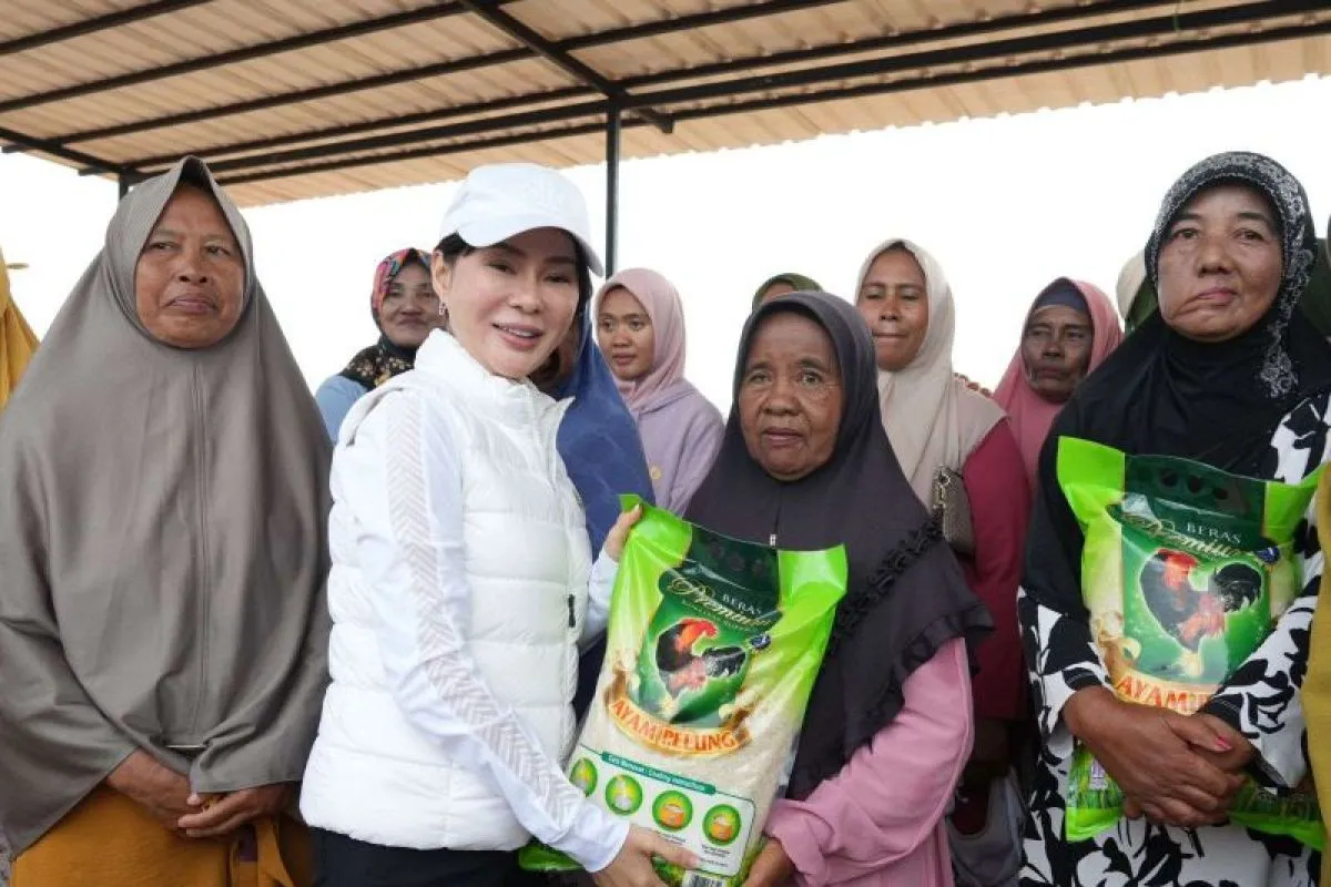 Dalam kegiatan itu juga, Li Claudia menyalurkan bantuan sosial berupa 250 kantong beras, masing-masing seberat 5 kilogram, kepada masyarakat sekitar.