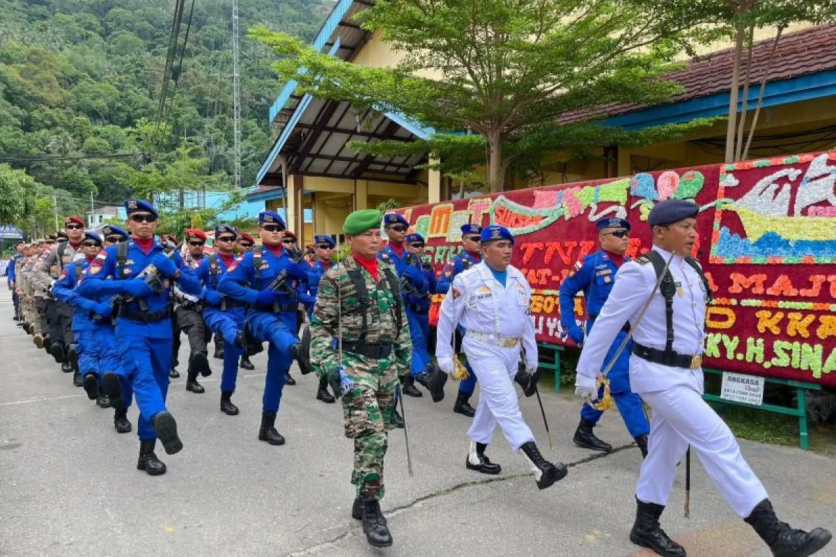 Soliditas itu ditunjukkan pada peringatan HUT Ke-80 TNI yang dilaksanakan di Pangkalan TNI Angkatan Laut (AL) Pulau Tarempa. Personel Polres Kepulauan Anambas dan Pangkalan TNI menggelar upacara bersama.