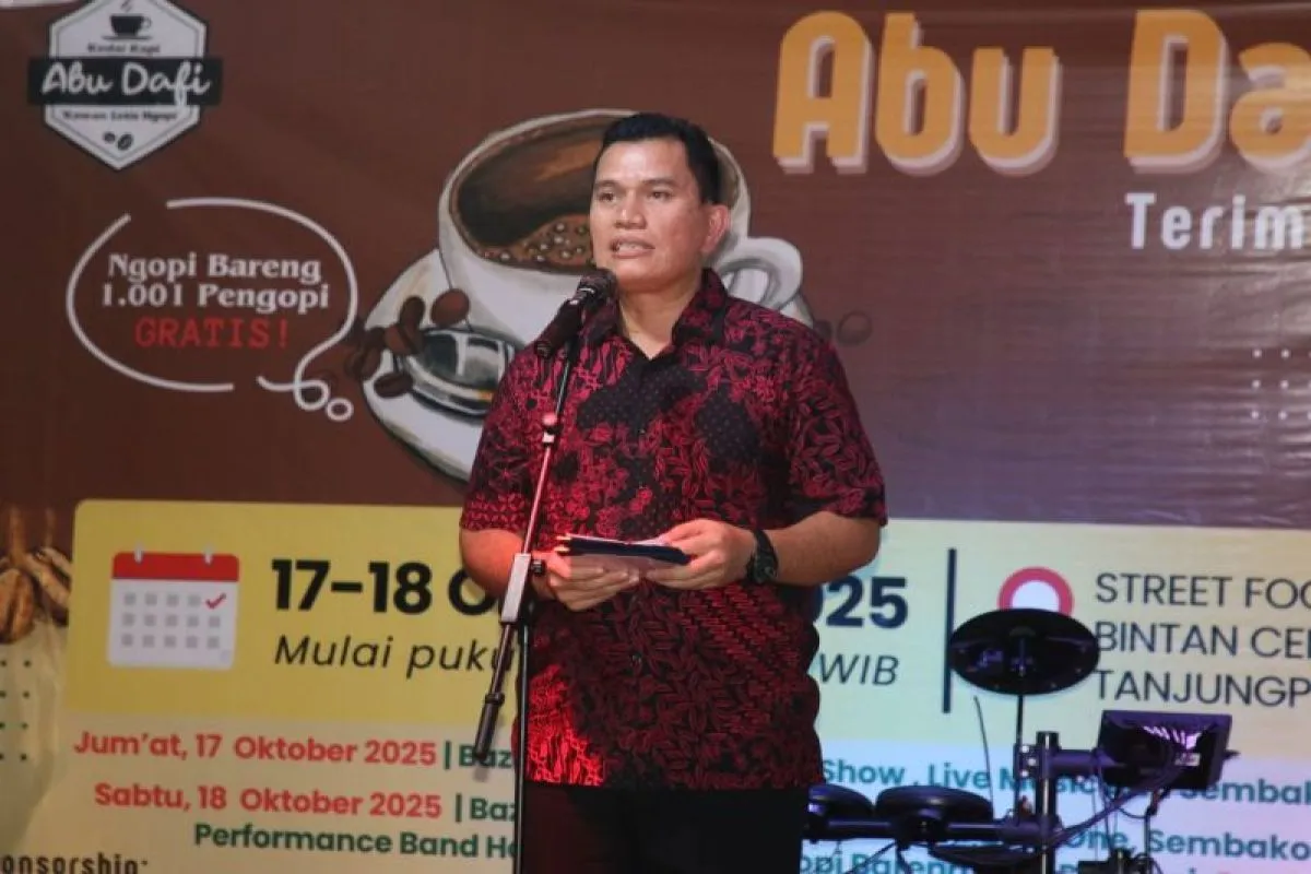 Wali Kota Tanjungpinang yang menyoroti peran strategis sektor kuliner, terutama kedai kopi sebagai indikator penting pertumbuhan ekonomi daerah, mengingat 48 persen warga Tanjungpinang adalah penikmat kopi.