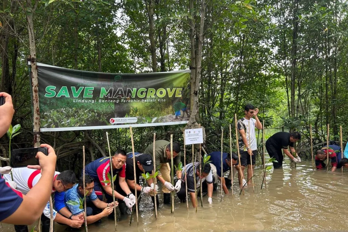 Penanaman ratusan bibit Mangrove jenis Rhizophora Sp (Bakau) dilakukan bersama Yayasan Akar Bhumi Indonesia serta sejumlah perwakilan pemerintah daerah, seperti Polda Kepri, BP Batam, TNI AL, Bakamla RI, dan Dinas Kelautan Perikanan Kepri serta Kota Batam.