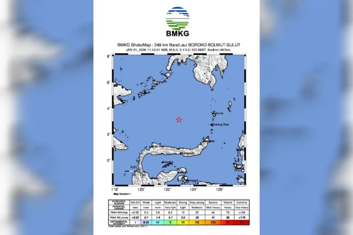 Berita ini telah tayang di Antaranews.com dengan judul: Gempa M5,0 guncang Sulut Rabu, dipicu deformasi Lempeng Sangihe