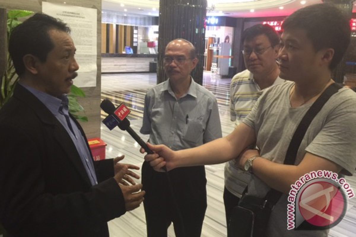 Ketua Delegasi Jurnalis Indonesia, I Made Tinggal Karyawan saat diwawancarai televisi Tiongkok terkait respon media massa terhadap jalur sutera abad ke-21 di Hai Kou, Hainan. (antarakepri.com/Foto Istimewa Lee Meng)