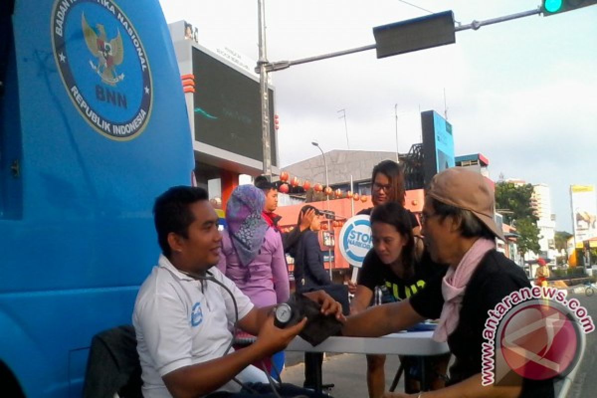 Masyarakat yang hadir dalam kegiatan pada Minggu pagi tersebut antusias untuk memeriksa kesehatan dan berkonsultasi mengenai bahaya narkoba.