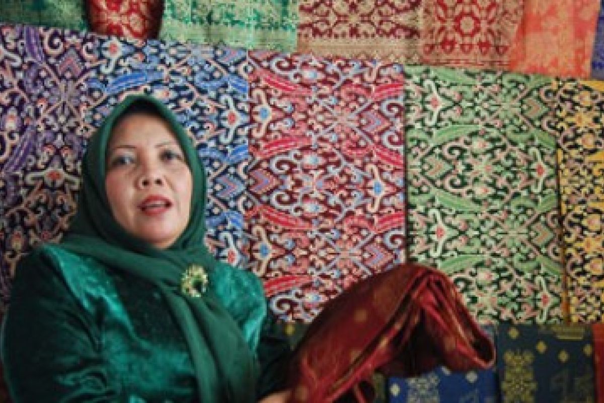 Seorang warga Tarempa, ibukota Kabupaten Kepulauan Anambas, Provinsi Kepulauan Riau, Nyonya Tajri, Minggu (1/5) menunjukkan beberapa kain motif Cual yang dipopulerkan kembali pemerintah setempat. Kain Cual pertama ditenun Hj Halimah, warga Siantan (k