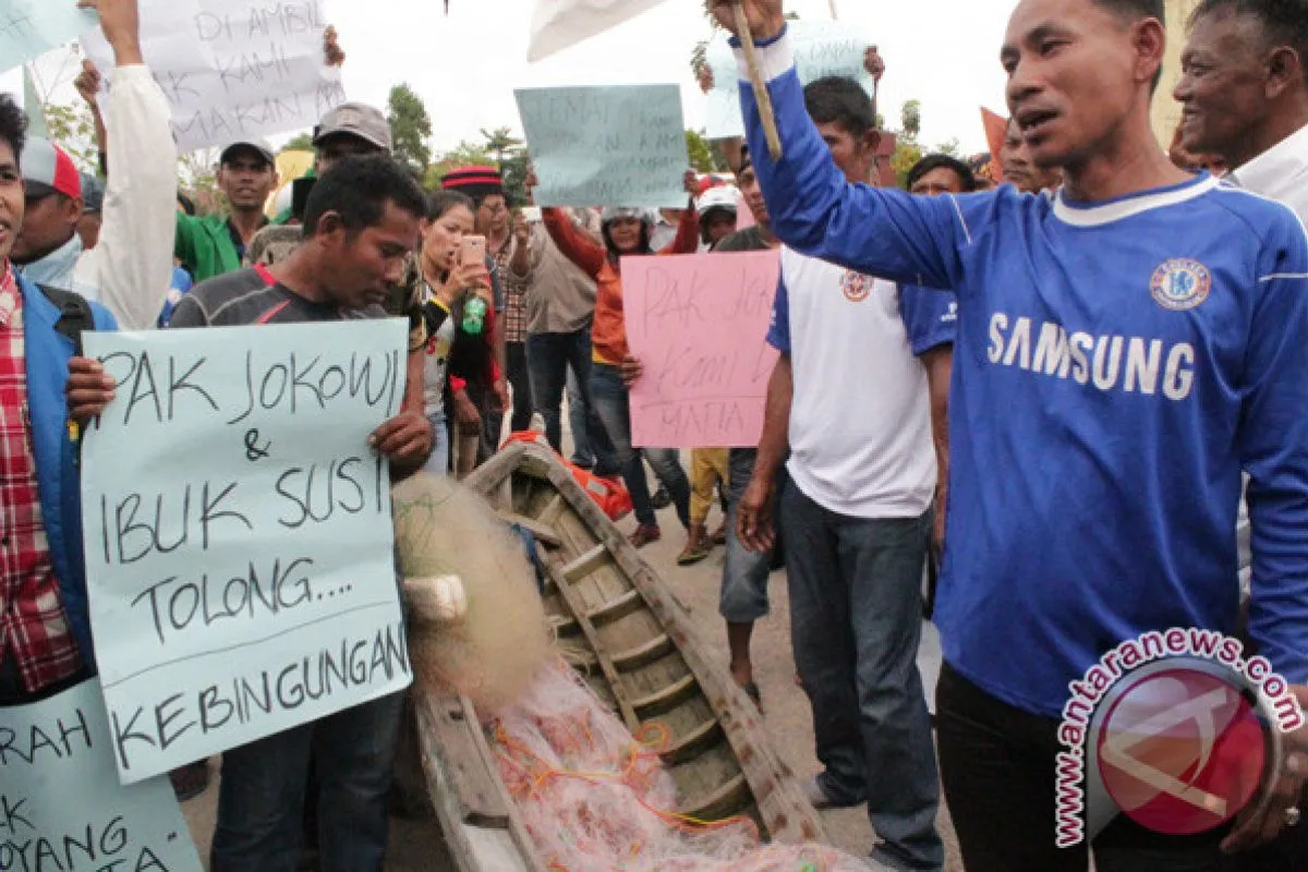 Karimun (Antara Kepri) - Sekitar 100 nelayan dan mahasiswa, Senin, berunjuk rasa mendesak Badan Pertanahan Nasional Kabupaten Karimun, Kepulauan Riau, membatalkan sertifikat hak milik atas lahan laut dan pantai di pesisir Kuda Laut, Baran Timur, Meral.