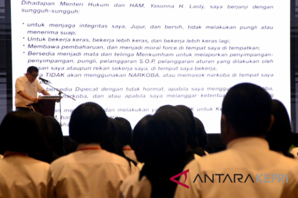 Batam (Antaranews Kepri) - Menteri Hukum dan Hak Asasi Manusia (Menkumham) Yasonna H Laoly memberikan motivasi kepada 580 Calon Pegawai Negeri Sipil (CPNS) di Provinsi Kepulauan Riau yang akan ditempatkan di Imigrasi dan Lembaga Permasyarakatan (Lapas).