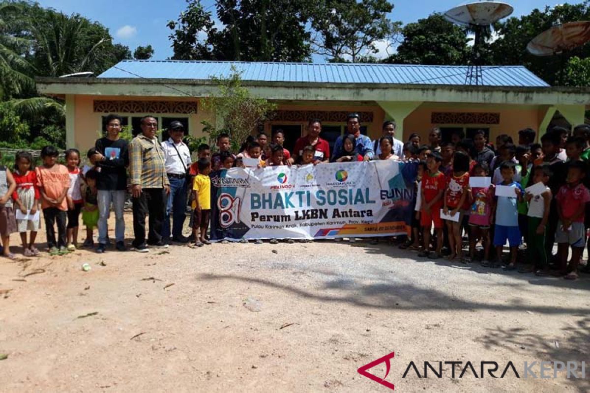 Karimun (ANTARANews Kepri) - Perum Lembaga Kantor Berita Nasional (LKBN) Antara Kepulauan Riau (Kepri) bersama PT Pelindo I, PT Persero Batam dan PT Angkasa Pura II berbagi kebahagiaan Natal bersama anak panti dan kaum dhuafa di pulau terluar Kabupaten Karimun, provinsi setempat