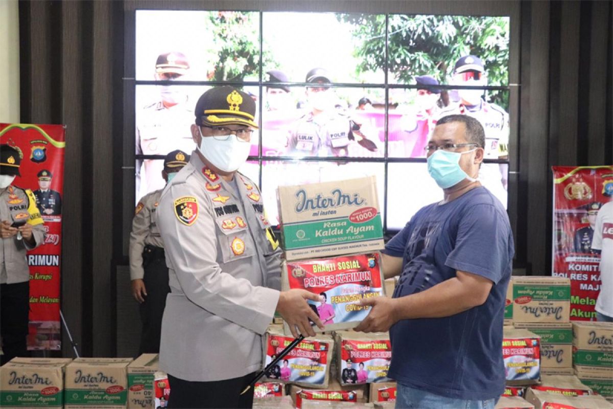 Tanjung Balai Karimun (ANTARA) - Kepolisian Resor Karimun, Kepulauan Riau membagikan paket sembako dan masker kepada puluhan wartawan sebagai bentuk dukungan dalam menghadapi masa sulit di tengah pandemi COVID-19 atau virus corona.