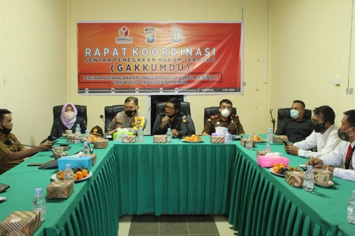Tanjung Balai Karimun (ANTARA) - Badan Pengawas Pemilu (Bawaslu) Kabupaten Karimun bersama kepolisian dan kejaksaan setempat menegaskan komitmen untuk penguatan fungsi Sentra Penegakan Hukum Terpadu (Gakkumdu) dalam mengawasi dan menindak pelanggaran dalam Pilkada serentak 2020.