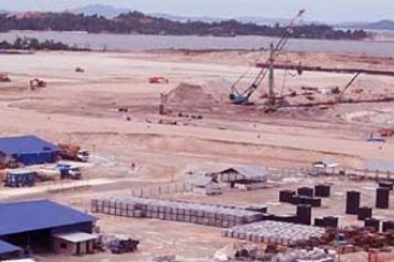 Bupati Karimun, Provinsi Kepulauan Riau Nurdin Basirun bersama Kontak Tani Nelayan Andalan sepakat mengawasi pembuangan limbah lumpur akibat pendalaman kolam pelabuhan oleh PT Saipem di Desa Pangke Kecamatan Mera. Tampak lokasi PT Saipem serta perairan pantai yang akan dijadikan kolam pelabuhan. (Foto kepri.antaranews.com/Rusdianto)