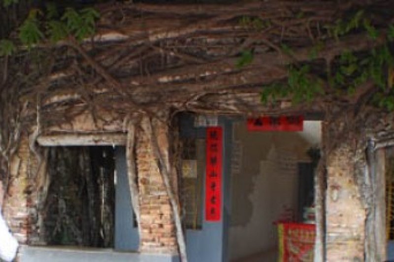 Seorang pengunjung berdoa di depan Kelenteng Tien Shang Miao yang dililit akar beringin di Kelurahan Senggarang, Tanjungpinang Kepulauan Riau. Kelenteng itu berusia 200 tahun, didirikan sejak 1811 dari rumah seorang tabib dan pohon serta lilitan akar ke dinding bangunan menunjukkan ketuaan usia sejarahnya. (kepri.antaranews.com/jo seng bie)