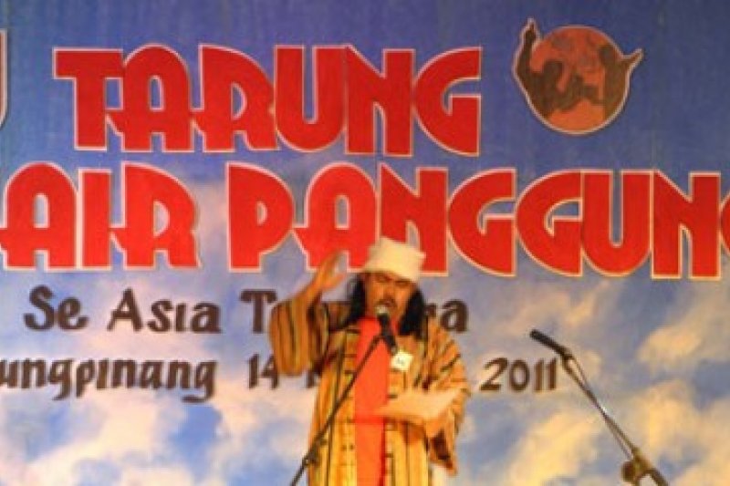 Seorang peserta lomba membacakan syairnya dalam Tarung Penyair Panggung se-Asia Tenggara di Tanjungpinang, Kepri, Kamis (14/4) malam. Tarung Penyair Panggung se-Asia Tenggara yang ke-2 itu hanya diikuti seorang penyair dari Brunei Darussalam dan puluhan penyair dalam negeri dengan puisi wajib karya Wali Kota Tanjungpinang, Suryatati A Manan. (kepri.antaranews.com/Henky Mohari)
