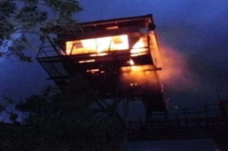 Dermaga dan jeti (komyor swiss box) granit milik PT Karimun Granite di Pasir Panjang, Meral, Karimun terbakar akibat imbas kebakaran tugboat Bulan yang terbakar saat menarik tongkang Alvin, Kamis pukul 03.30 WIB dari dermaga PT Tri Megah Perkasa Utama menuju Tuas, Singapura. Kerugian akibat kebakaran itu diperkirakan mencapai miliaran rupiah. (kepri.antaranews.com/istimewa)