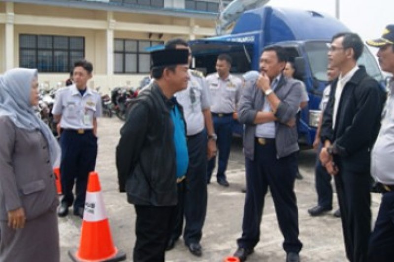 Bupati Natuna llyas Sabli (peci hitam) berbincang dengan Direktur Lalu Lintas Angkutan Sungai, Darat dan Penyeberangan (LLASDP) Sudirman Lhambali (tiga kanan) saat meninjau lokasi pembangunan pelabuhan penyeberangan yang bisa disandari kapal berbobot 1.000 GT di Penagi, Ranai, Natuna, Rabu (29/1). Pelabuhan tersebut rencananya dianggarkan Rp30 miliar melalui APBN dan APBD Natuna 2015.(antarakepri.com/Zam Jambak)