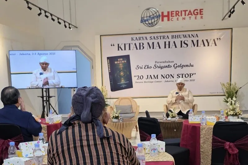 Jakarta (ANTARA) – Pagelaran karya budaya dan spiritual bertajuk “Karya Sastra Bhuwana: Kitab MA HA IS MA YA” digelar di Antara Heritage Center (AHC), Jalan Antara No. 59, Jakarta Pusat, pada Sabtu hingga Minggu, 2–3 Agustus 2025.