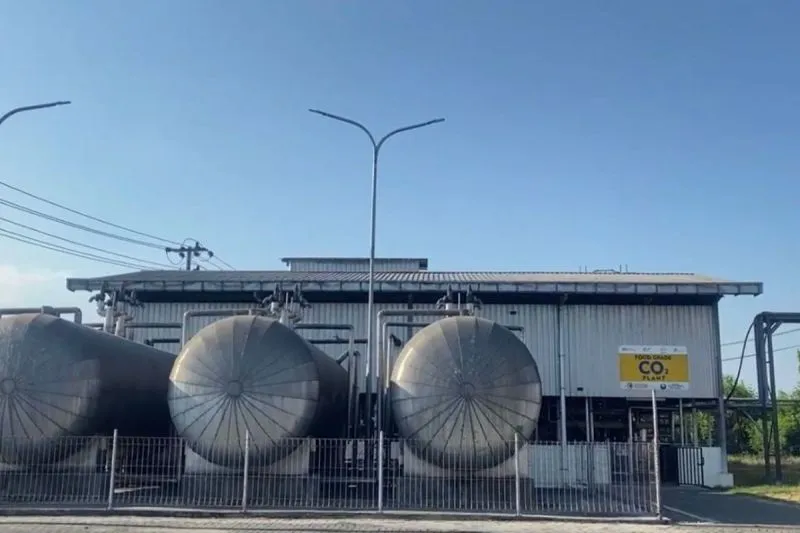 "Nah, gas CO2 itu tidak kita lepas ke udara, tetapi ditangkap menggunakan teknologi gas catcher untuk dimurnikan secara intensif. Dengan perlakuan khusus, gas CO2 itu kami konversi menjadi CO2 Cair" kata Puji.